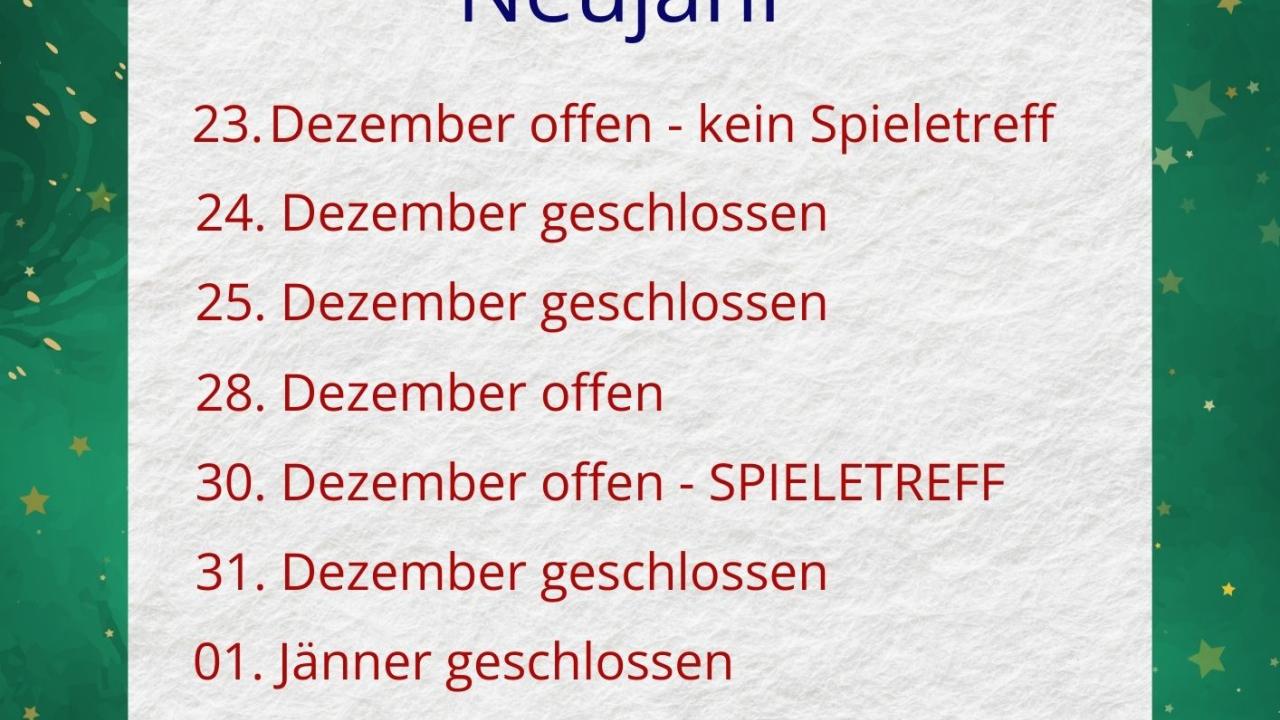 Öffnungszeiten über die Feiertage